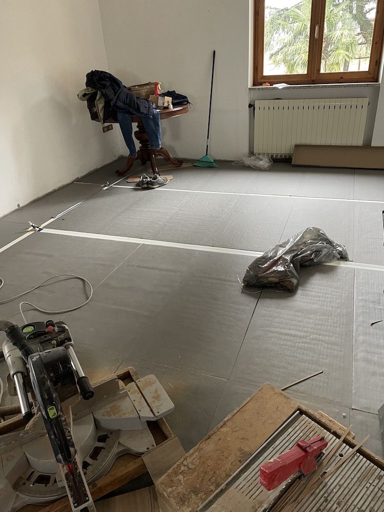 The BASIC modules are assembled directly on the existing floor to cover the area involved. Once the floor has been formed, the surface is completed with the desired material and decoration.
